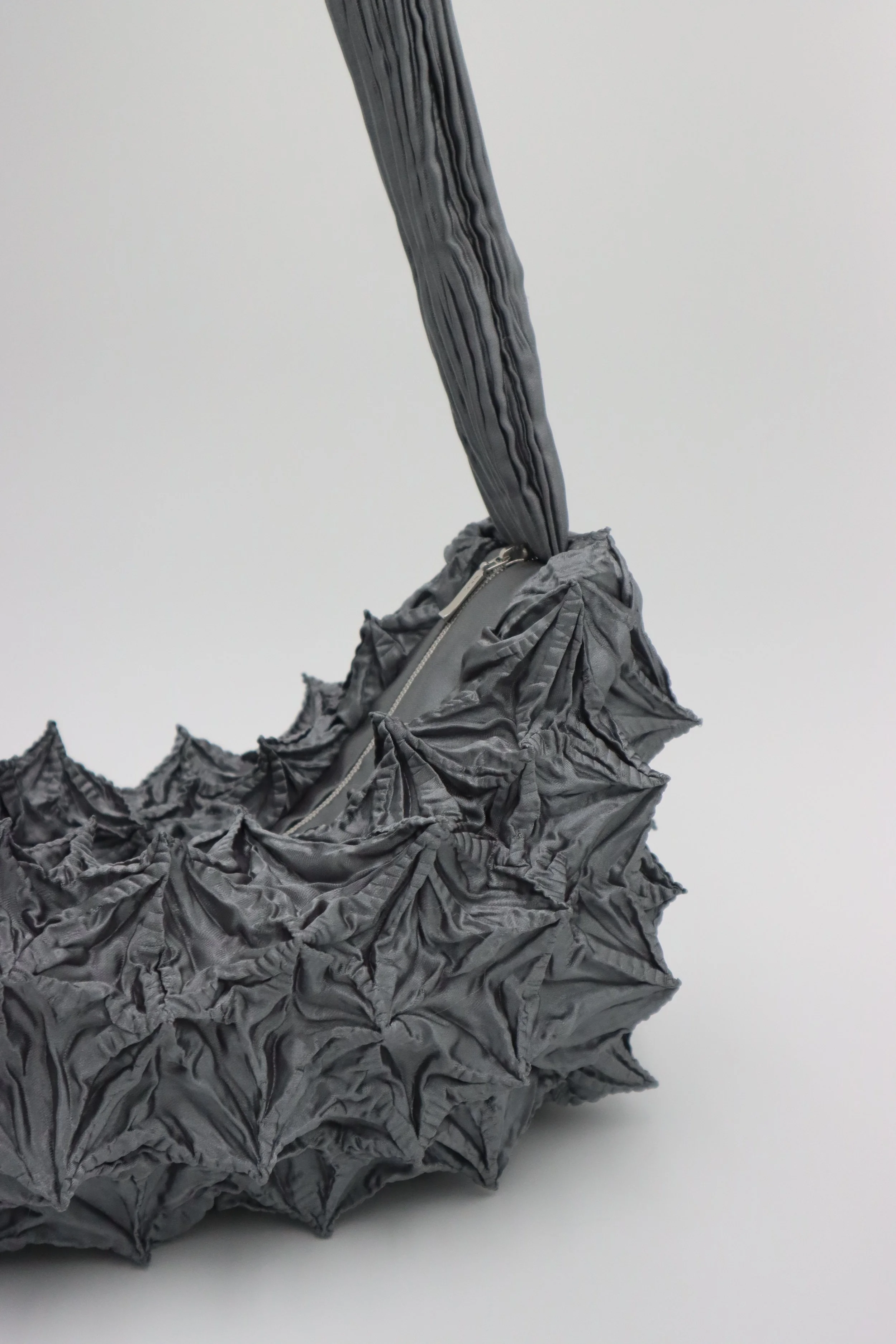 I explore the sculptural beauty of shibori, shaping fabric into one-of-a-kind textures and forms. Each piece carries time, touch, and intention, a quiet dialogue between my Japanese heritage and contemporary design.